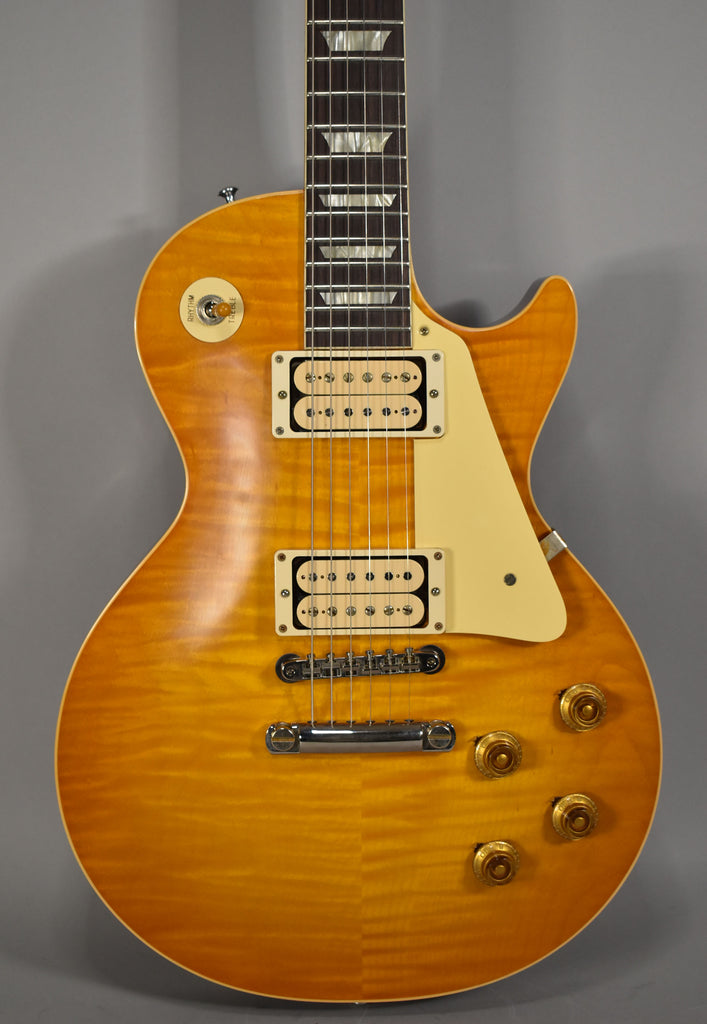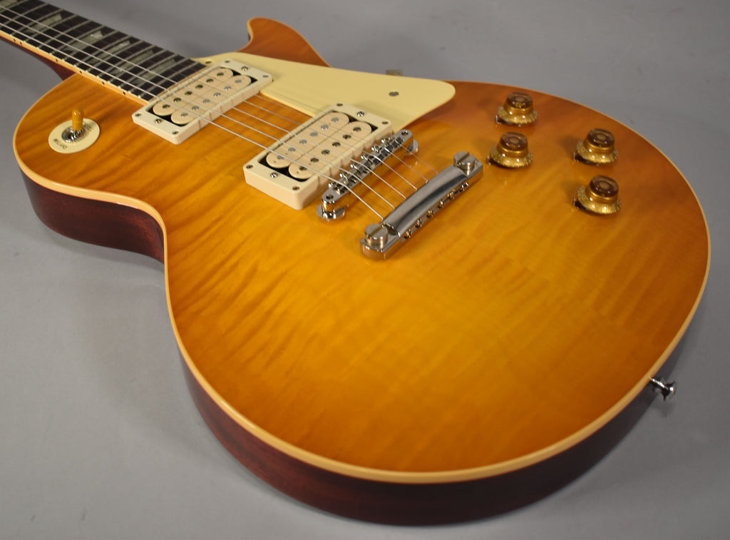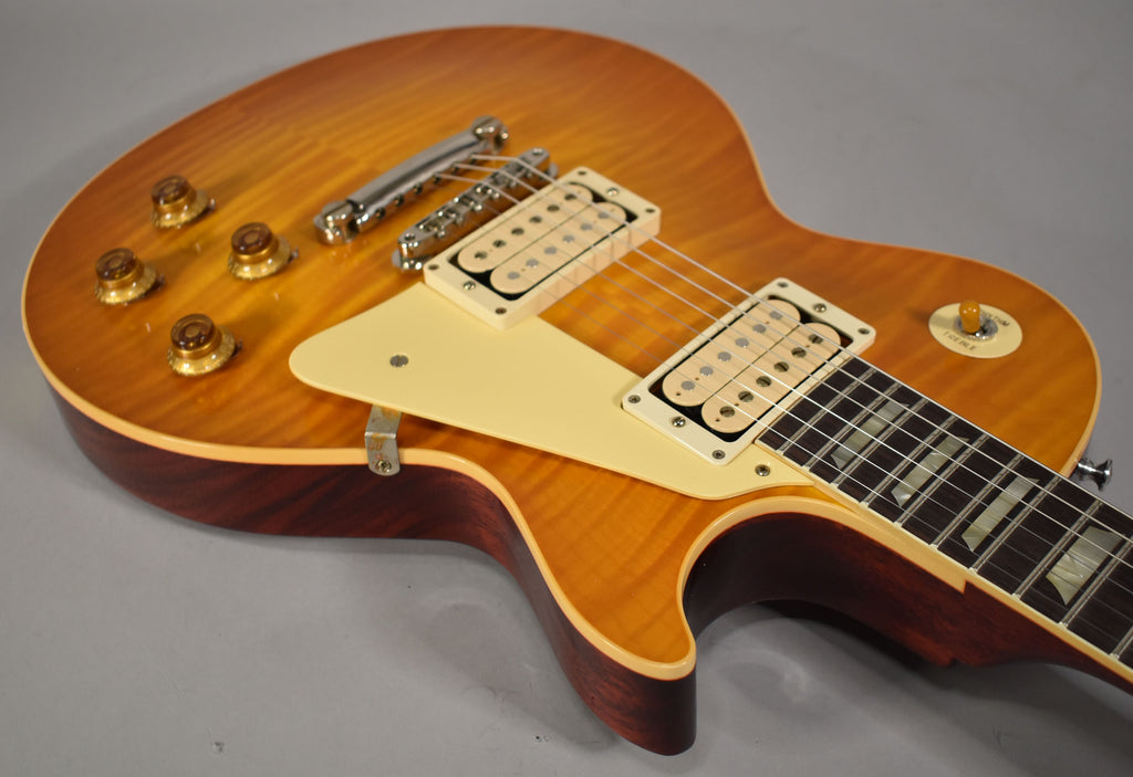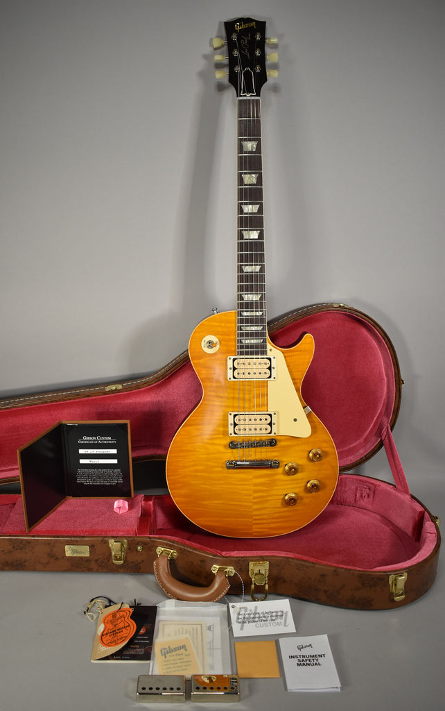 Gibson Custom Shop's 1959 Les Paul™ Standard Reissue is not just a tribute to the priceless original models -- it's a clone of them. From laser-scanned dimensions to chemically-recreated plastics to color-matched shades of sunburst, every element has been rendered in unbelievable detail. It represents the culmination of decades of work by Custom Shop's expert team -- a tireless quest to bring accuracy and authenticity to the hands of fans.