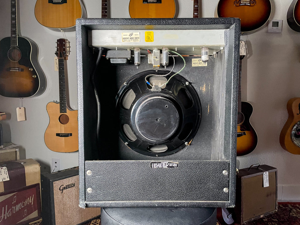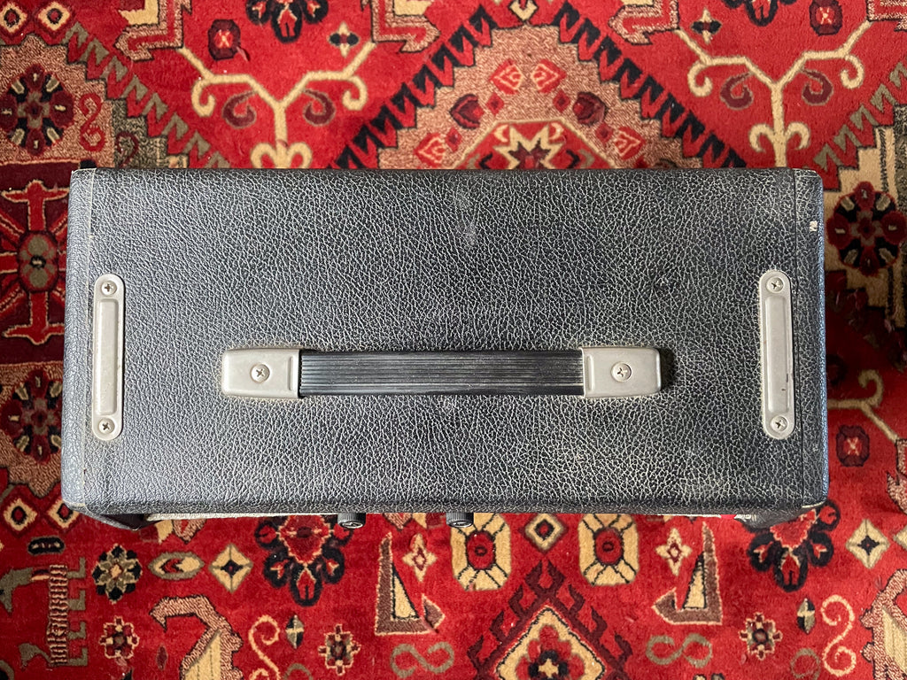 The Fender Musicmaster Bass Amp Model CFA‑7010 is a rare early‑’70s 12‑watt all‑tube combo powered by twin 6AQ5 output tubes and a 12AX7 preamp, paired with a single 12″ speaker. Originally designed for student bass practice, it quickly became popular with guitarists for its warm, tweed‑like tone and surprising breakup. Compact and characterful, it’s a cult favorite among vintage amp enthusiasts.