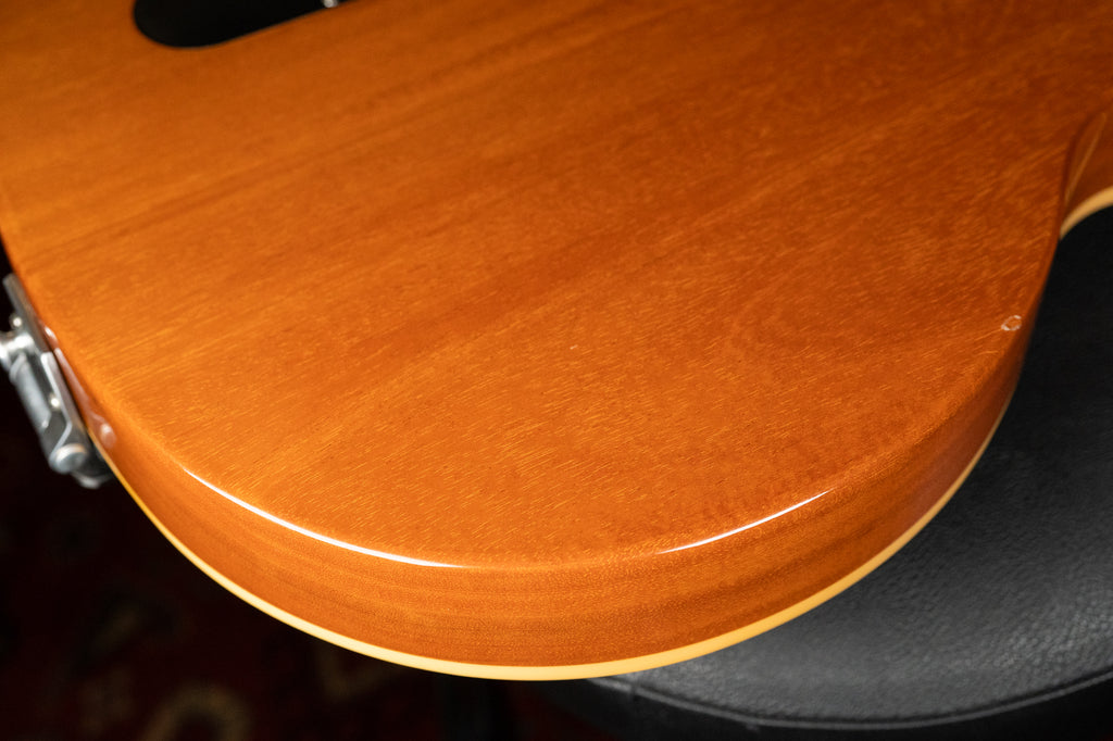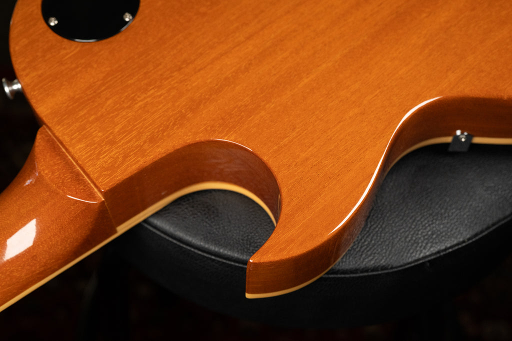 The 2008 Gibson LP-295 Goldtop blends the solid-body power of a Les Paul with the vintage styling cues of the hollow-body ES-295. It features a mahogany body with maple top, a Florentine cutaway (much deeper than a typical Les Paul), and a bound mahogany neck with rosewood fingerboard and split-parallelogram inlays. Two ’57 Classic humbuckers provide warm, PAF-inspired tones, while a Bigsby B7 tremolo and hand-painted floral pickguard pay tribute to the ES-295 aesthetic. With limited production (1,000 units total) and a distinctive Goldtop finish, the LP-295 offers a rare hybrid of style, tone, and collectible appeal.
