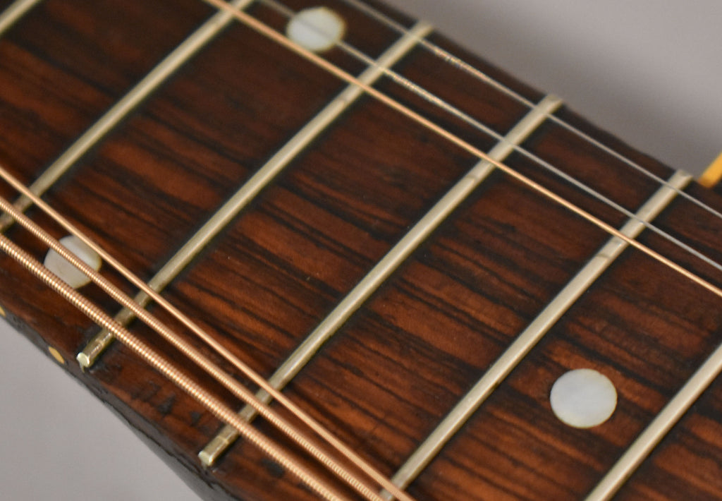 A 1946 Gibson J-45 is a classic post-war slope-shoulder dreadnought, prized for its warm, woody tone and effortless playability. Built with a spruce top and mahogany back and sides, it delivers a dry, punchy low end with sweet, focused mids—perfect for singer-songwriters and roots players. Finished in Gibson’s iconic sunburst, the ’46 J-45 represents the early evolution of one of the most beloved acoustic guitars ever made.