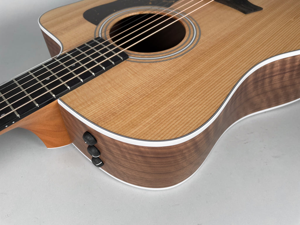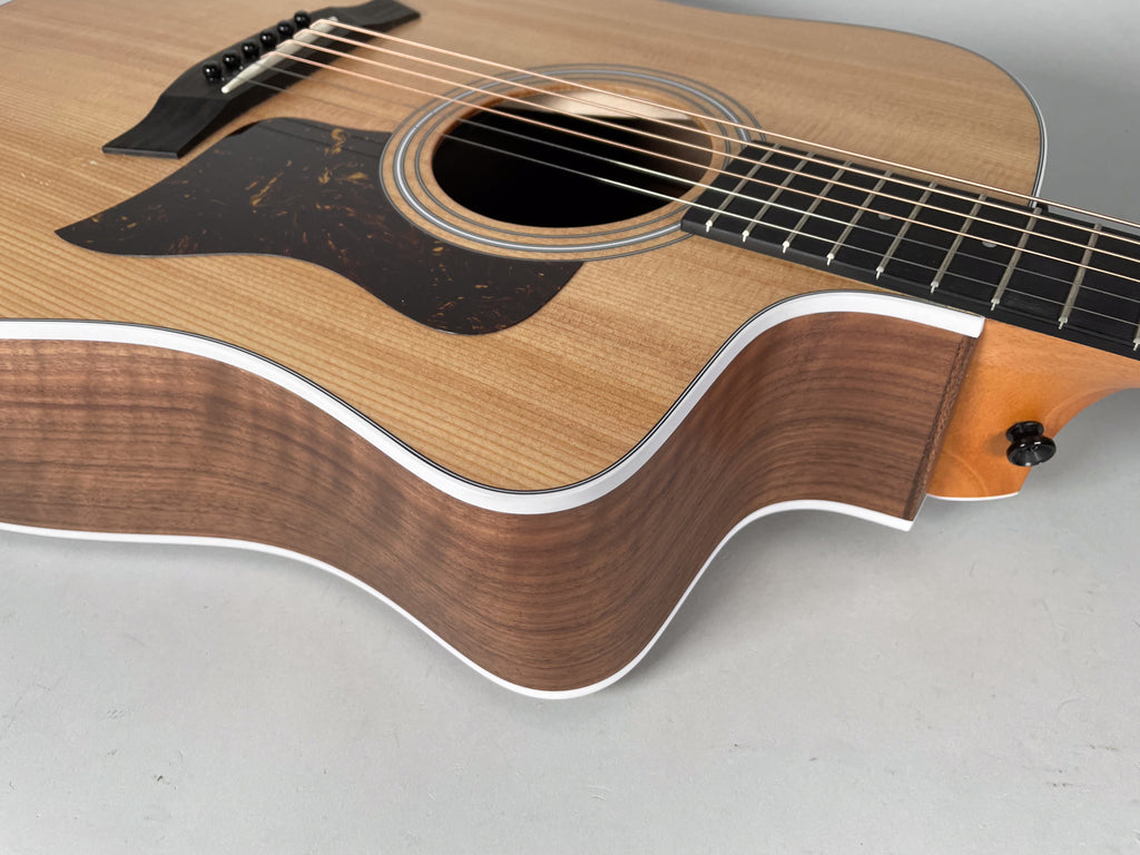 A versatile and player-friendly acoustic-electric dreadnought, the Taylor 210CE blends big, balanced tone with modern playability. It features a solid spruce top for clarity and warmth, paired with layered back and sides and a comfortable mahogany neck that’s easy to play for strumming or fingerstyle. The Venetian cutaway gives effortless access to higher frets, and Taylor’s Expression System 2 electronics deliver natural, dynamic amplified sound when plugged in. With its classic aesthetic and reliable performance, it’s an excellent choice for both stage and studio.