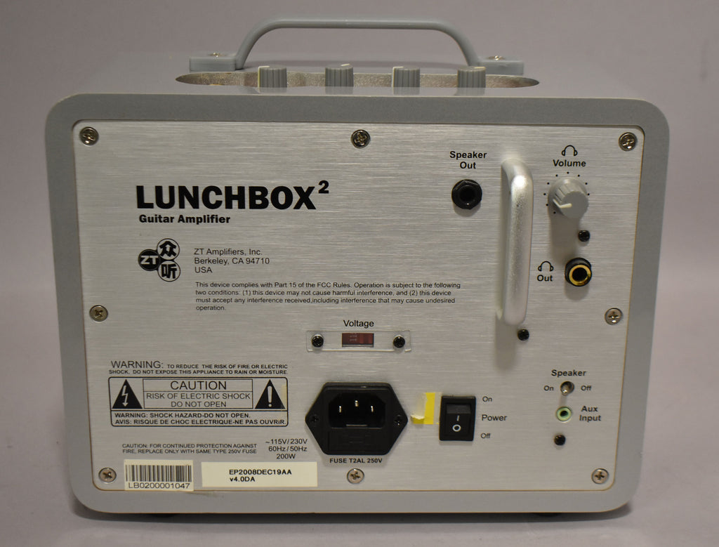 The ZT Lunchbox LBG2 is an ultra-compact yet powerful solid-state electric guitar combo amplifier that delivers up to 200 W of Class A/B power from a tiny 6.5″ internal speaker, producing volume and presence suitable for practice, stage, and studio use despite its lightweight design. It’s known for its clean, responsive tonal character that takes pedals well, and includes simple controls for Input, Gain, Volume, Tone, and Ambience (a subtle open-back simulation), plus connectivity options like headphone/line out, auxiliary input, and external speaker output. Its small size, surprising loudness, and versatility have made it popular with players who want a portable amp without compromising performance.