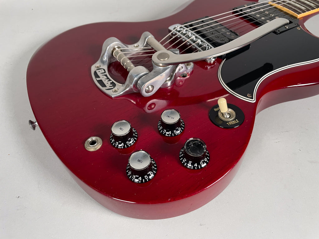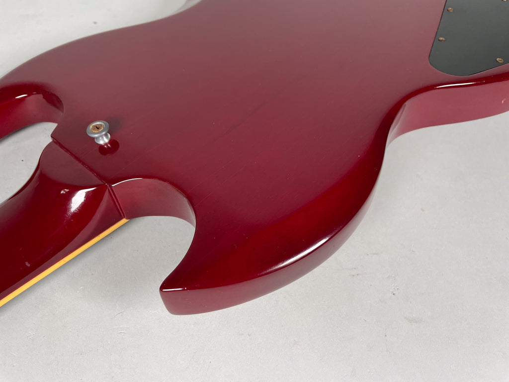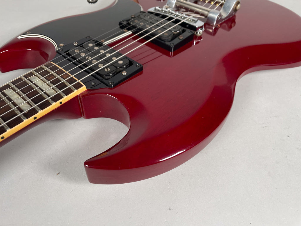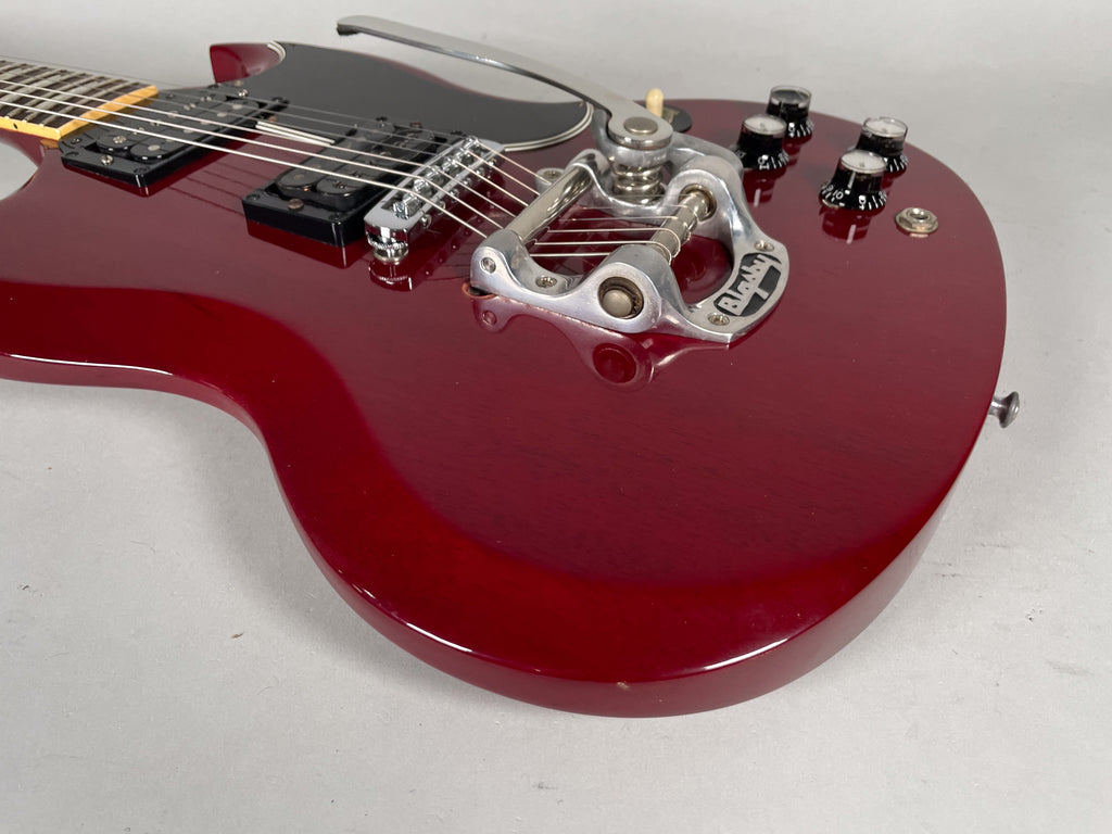 This 30 year old SG drips vibes. The previous owner added the Bigsby early in its life. Infact, all the changes were made early on. This guitar has been in this format longer than it was stock. Very resonant axe. You can get just another stock Cherry '61 reissue or this one that is broken in like an old glove. Be a bit different.
