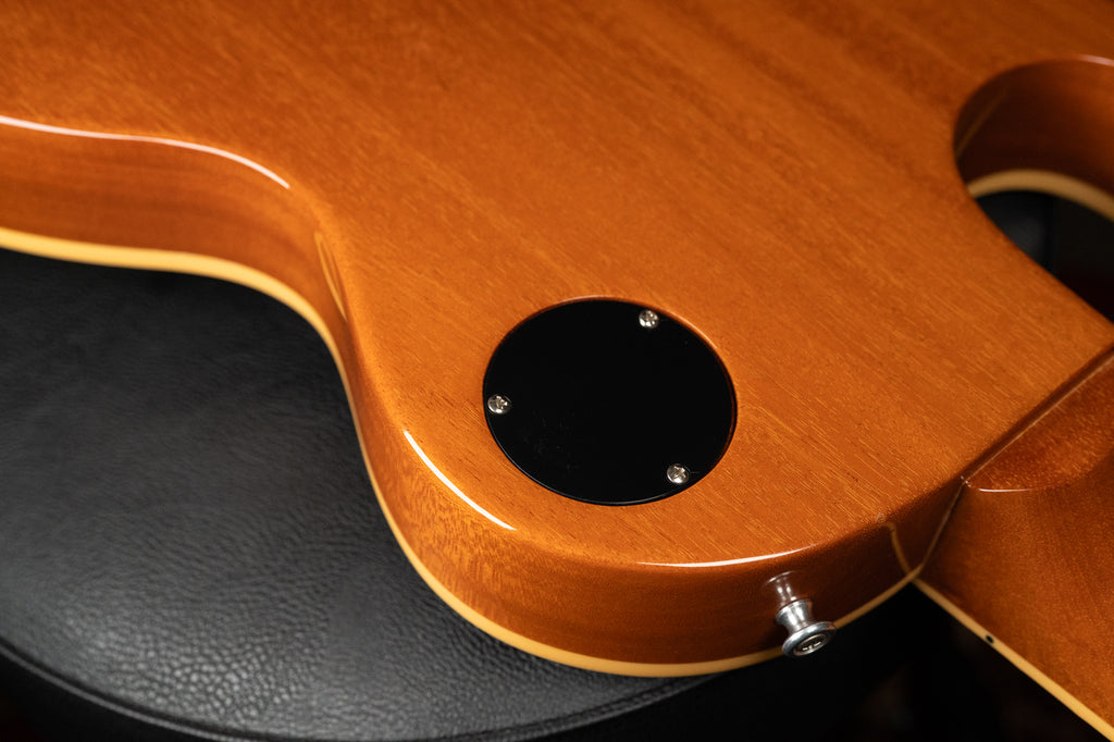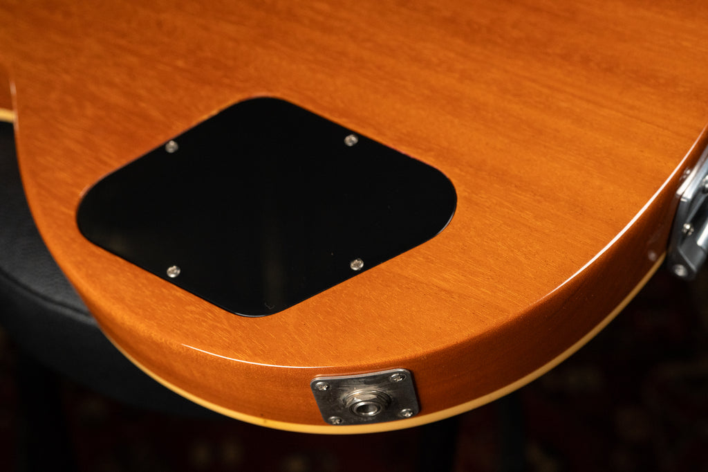The 2008 Gibson LP-295 Goldtop blends the solid-body power of a Les Paul with the vintage styling cues of the hollow-body ES-295. It features a mahogany body with maple top, a Florentine cutaway (much deeper than a typical Les Paul), and a bound mahogany neck with rosewood fingerboard and split-parallelogram inlays. Two ’57 Classic humbuckers provide warm, PAF-inspired tones, while a Bigsby B7 tremolo and hand-painted floral pickguard pay tribute to the ES-295 aesthetic. With limited production (1,000 units total) and a distinctive Goldtop finish, the LP-295 offers a rare hybrid of style, tone, and collectible appeal.