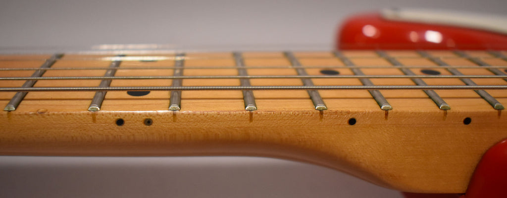 Laminated Alder Body In Fiesta Red Finish Shows Some Playwear Throughout Including Cosmetic Marks, Dings And Scratches (As Shown)