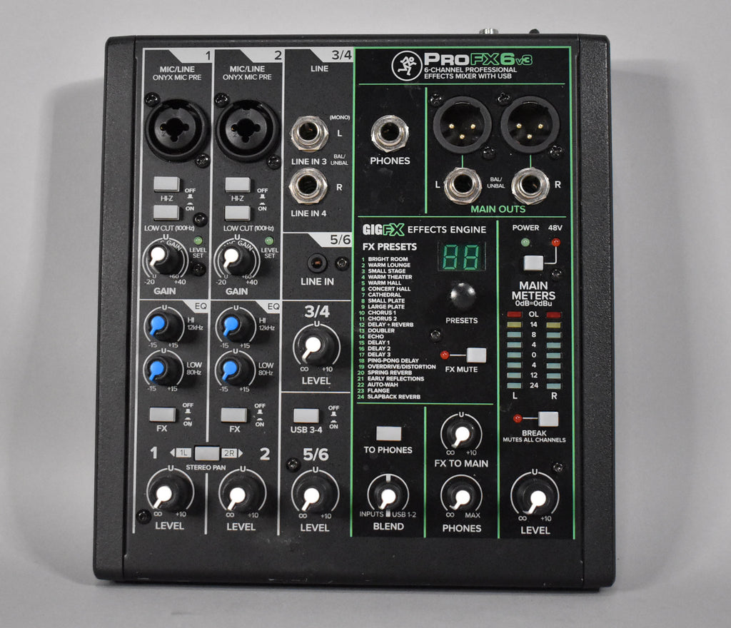 The Mackie ProFX6v3 is a compact 6-channel analog mixer built for creators, musicians, and podcasters. With professional-grade Onyx mic preamps, 24 built-in effects, and high-resolution USB recording, it delivers studio-quality sound anywhere. Rugged, reliable, and versatile, it’s the perfect all-in-one solution for live performance, recording, or streaming.