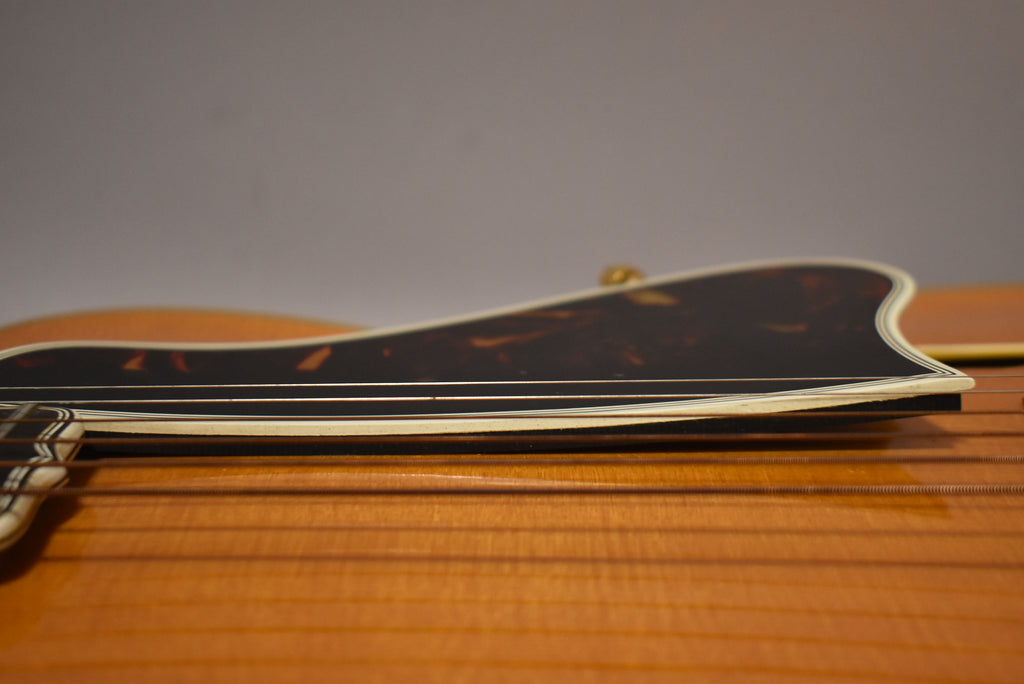A 1962 Gibson L-5CN is a classic 17" archtop jazz guitar, prized for its elegance and warm, authoritative tone. Finished in natural blonde, it features a hand-carved spruce top, figured maple back and sides, a Venetian cutaway, and an ebony fingerboard with block inlays. Known for its rich acoustic resonance and smooth amplified voice, the L-5CN has long been a gold standard for professional jazz players and collectors alike.