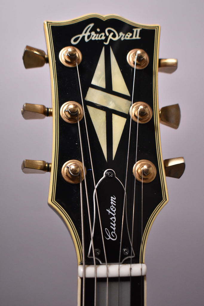 The Aria Pro II LC-550 is a vintage Aria Pro II electric guitar from the late 1970s (typically Made in Japan by Matsumoku) and part of Aria’s higher-end Les Paul-style lineup. It features a solid, single-cutaway body with carved top and set neck, dual humbucking pickups, and gold-plated hardware, giving it both a classic look and a broad tonal range. The LC-550 was positioned above the LC-500 with its more ornate/custom appointments, and it’s prized today for heavy sustain, balanced sound, and quality Japanese craftsmanship from that era.