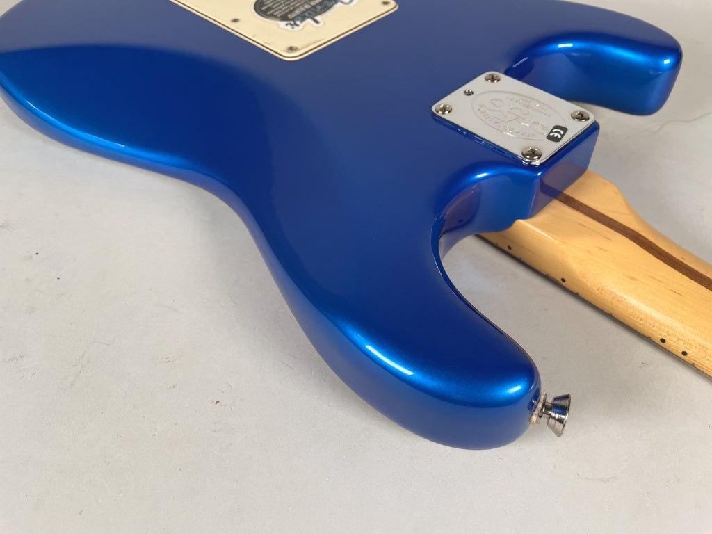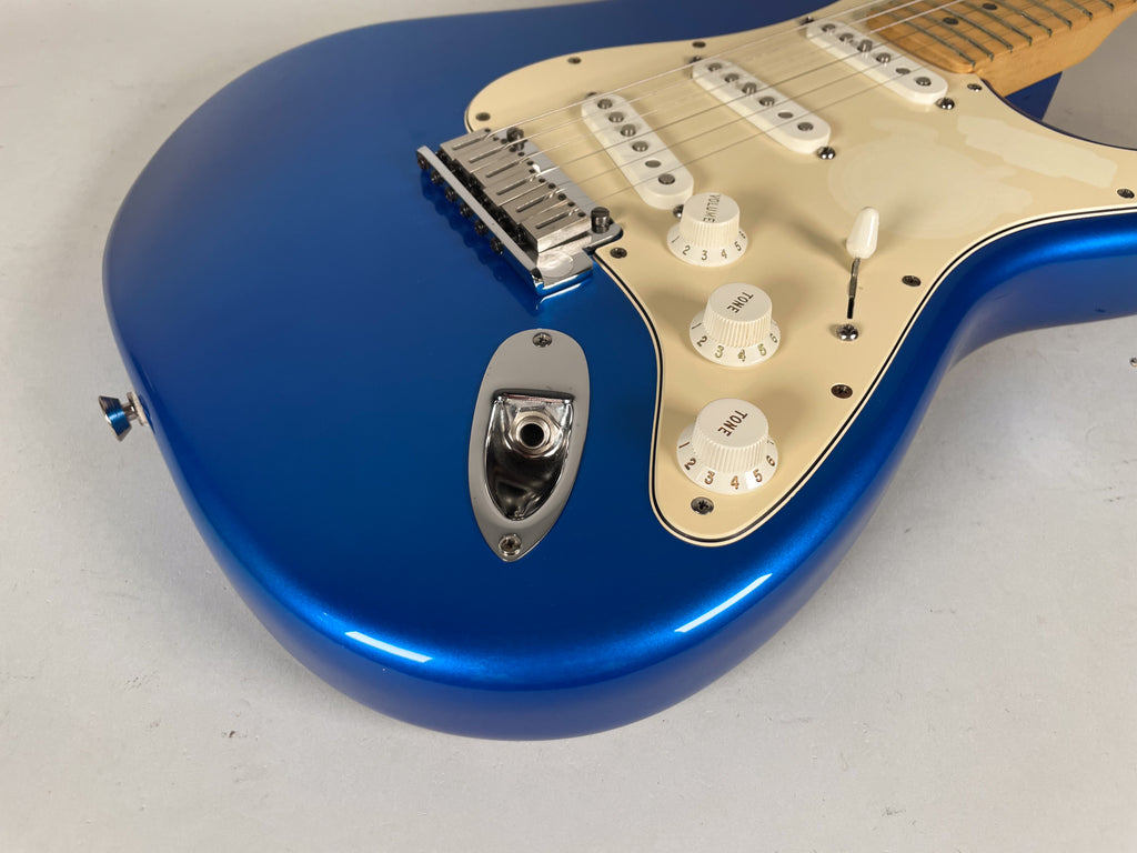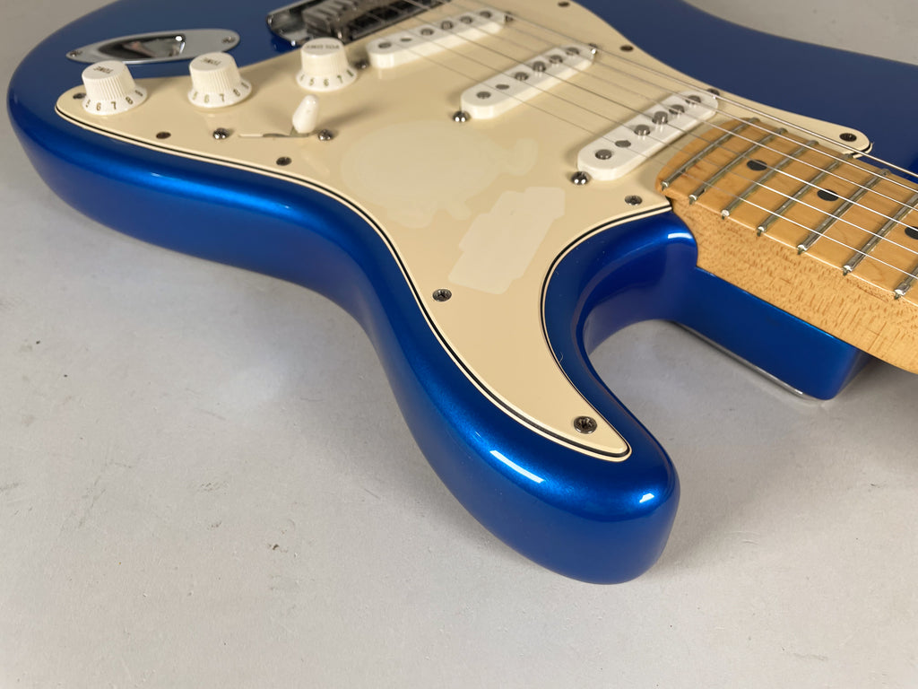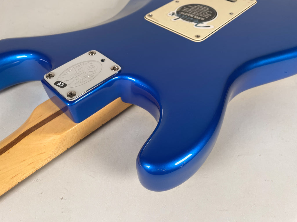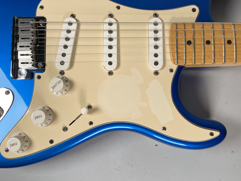 A limited-edition U.S.-made Stratocaster celebrating the 50th anniversary of the iconic model’s 1954 debut, this 2004 Strat blends classic design with commemorative flair. It sports a striking solid ash body in Chrome Blue, a maple neck with comfortable modern “C” profile, and three vintage-style single-coil pickups that deliver the bright, articulate tones Stratocasters are known for. With a synchronized tremolo bridge, custom staggered tuners, and a special engraved anniversary neck plate, it’s both a collector’s piece and a versatile player’s guitar.