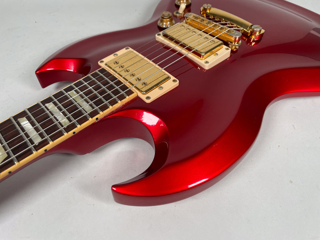 The 2008 Gibson SG Diablo Guitar of the Month 2008 is a striking limited-edition model from Gibson’s celebrated Guitar of the Month series, featuring a uniquely carved mahogany body that adds dramatic contour and visual depth to the classic SG design. Equipped with vintage-voiced humbuckers and premium appointments, the Diablo delivers thick, articulate tone with exceptional sustain and modern playability. Produced in limited numbers—reportedly around 1,000 units—this bold and collectible SG stands out for its aggressive styling and high-performance feel.