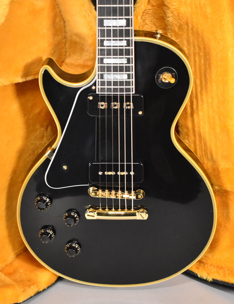 While some were produced in 1953, 1954 was the first full year for the classy-looking, tuxedo-inspired Gibson Les Paul™ Custom. The Custom was the first guitar to come equipped with the now-legendary ABR-1 Tune-O-Matic™ bridge. Like the earliest Les Paul Customs, this Gibson Custom reissue is equipped with a Staple pickup in the neck position and a Soapbar P-90 pickup in the bridge position, along with gold hardware. It also has a one-piece mahogany body, Kluson® Waffleback® tuners with plastic buttons, CTS® potentiometers, paper in oil capacitors, and comes with a Custom Shop hardshell case and Certificate of Authenticity.